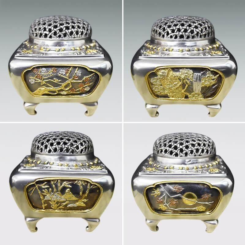 角型 四季香炉 H6.5cm|青鳳:原型制作|銀製・彩色仕上げ