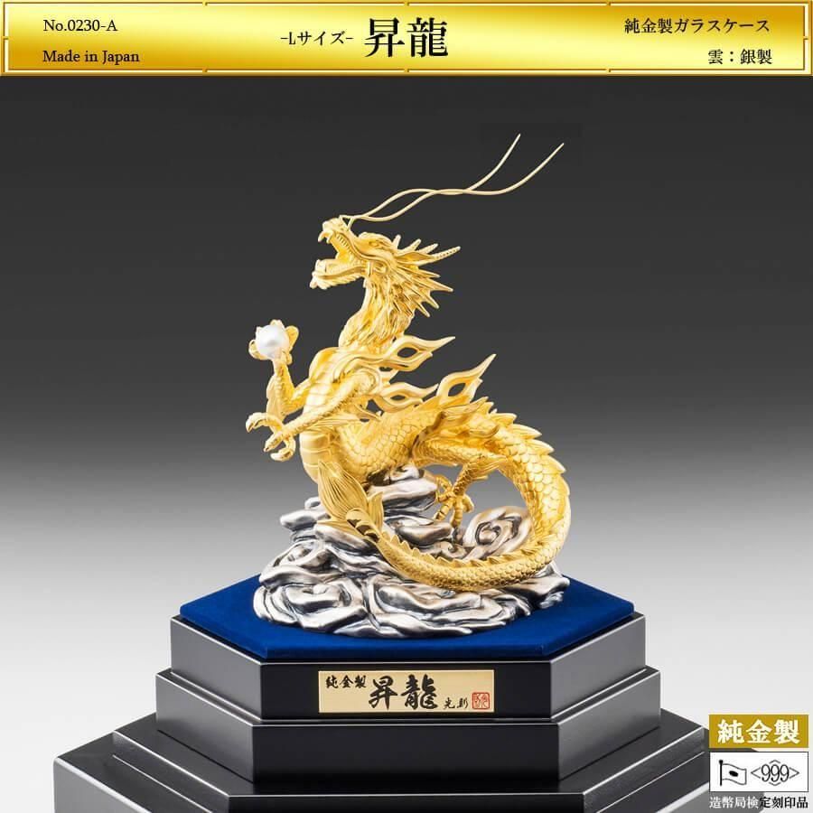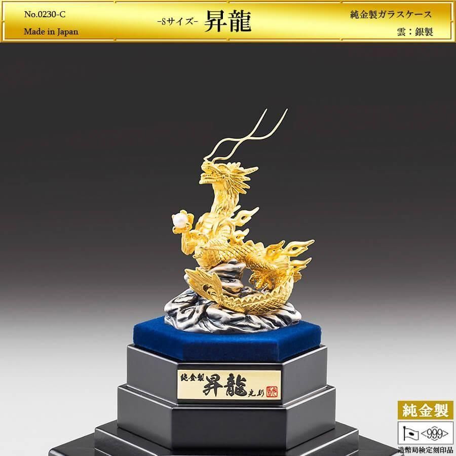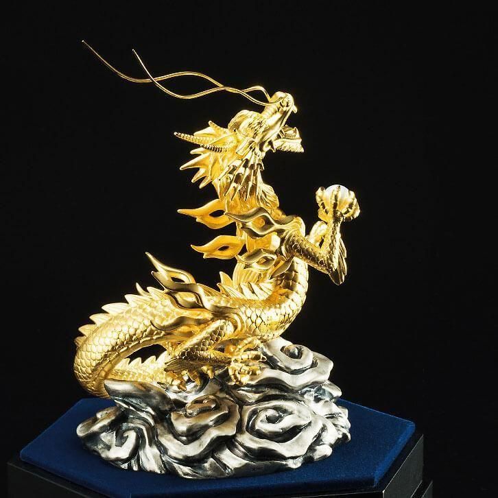 吉兆の瑞雲(ずいうん)を巻き起こし勇壮に天空を昇り行く姿であり、表情、首のたてがみ、鱗(うろこ)、五つの鋭い爪の細部に至るまで、精巧かつ繊細に仕上げました。