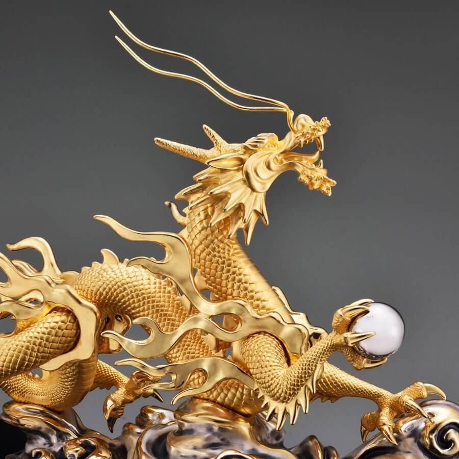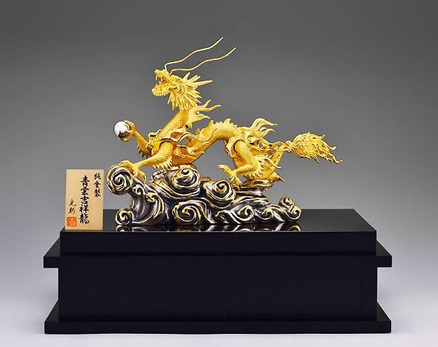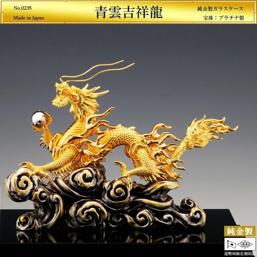 青雲吉祥龍|宝珠:プラチナ製 純金製・銀製ガラスケース3タイプ