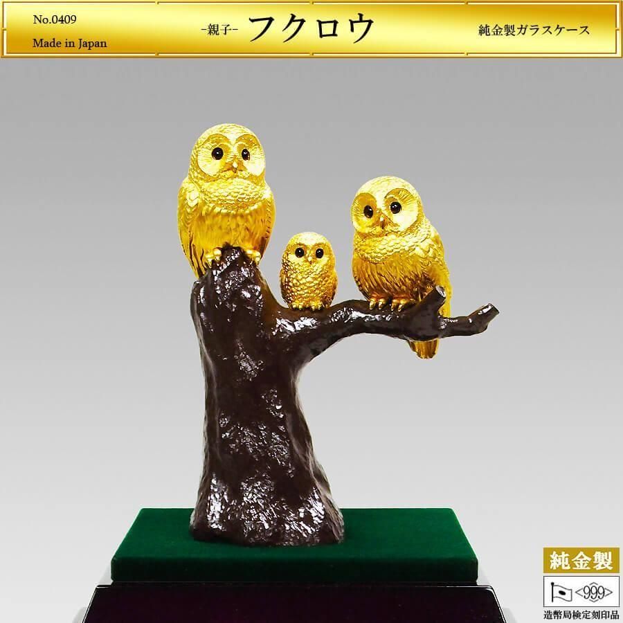 親子フクロウ|純金製ガラスケース