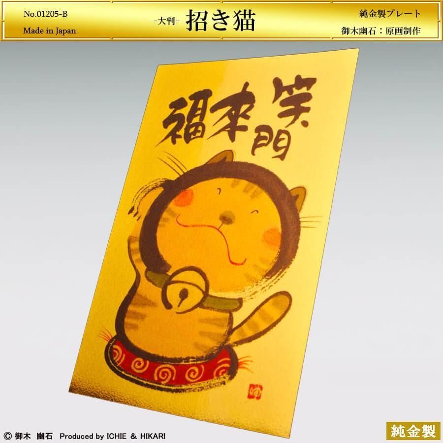 招き猫&書|純金製プレート10タイプ 大判 (C)御木幽石