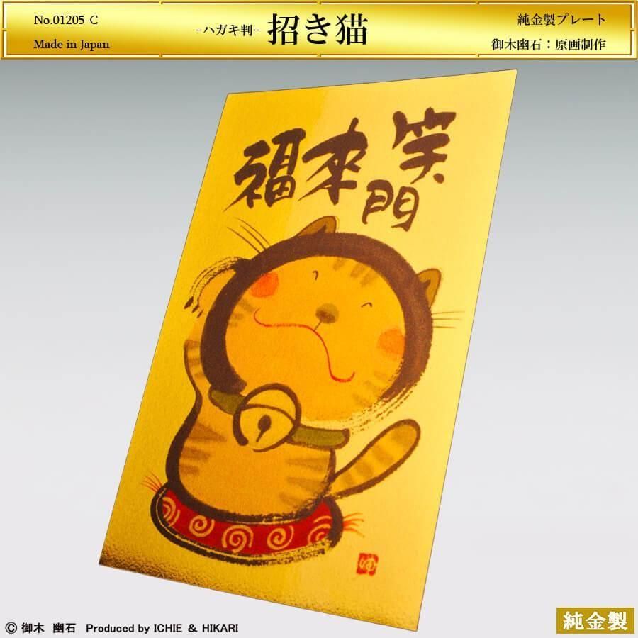 招き猫&書|純金製プレート10タイプ ハガキ判 (C)御木幽石
